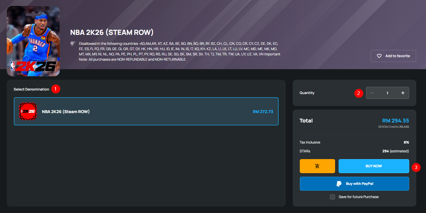 Step 1: Log in/register an account in SEAGM. On the top menu, enter the keywords "NBA" and search. Select " NBA 2K26 (Steam ROW)".