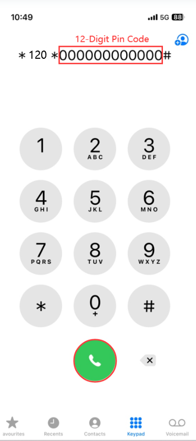 Step 2: On your mobile phone, dial *120*12-DIGIT RECHARGE CODE#