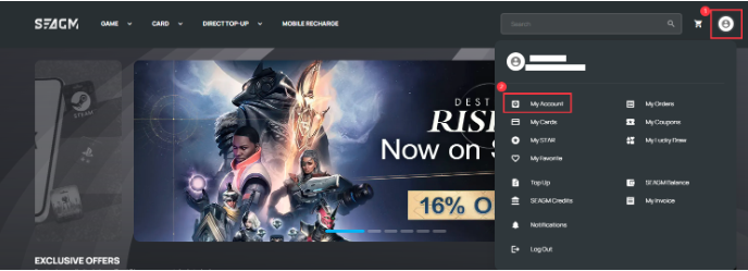 Step 1: Start by logging in to your SEAGM account. Once you’re logged in, click on the profile icon located at the top right corner of the page. From the dropdown menu, select “My Account.”