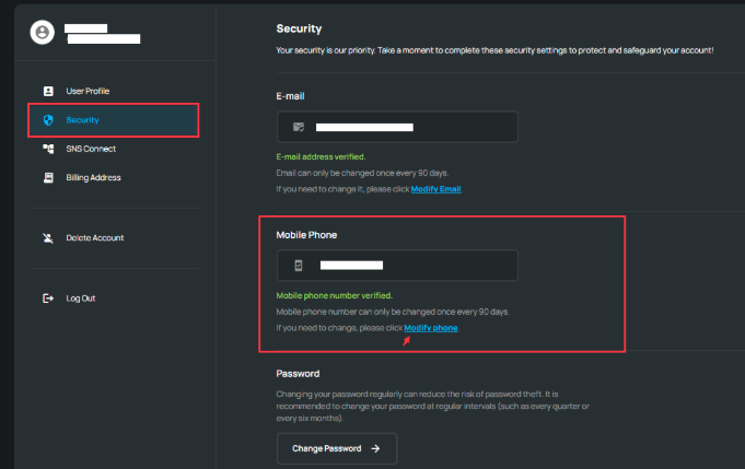 Step 4: Under the Mobile Number section, you’ll see an option labelled [Modify phone]. Click on it to begin updating your mobile number.