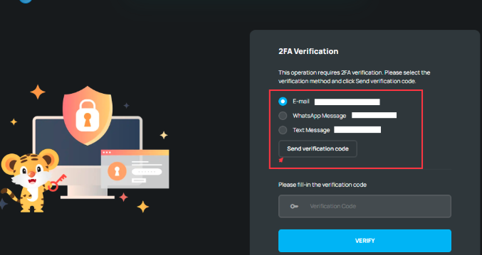 Step 5: You’ll need to verify your identity using one of the available verification methods. Choose your preferred method and click [Send Verification Code].