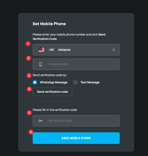 - Enter the verification code you received, and finally click [Save Mobile Number].
