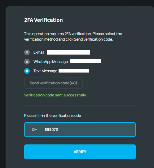 Step 6: After receiving the verification code, enter it in the box provided and click Verify to proceed.
