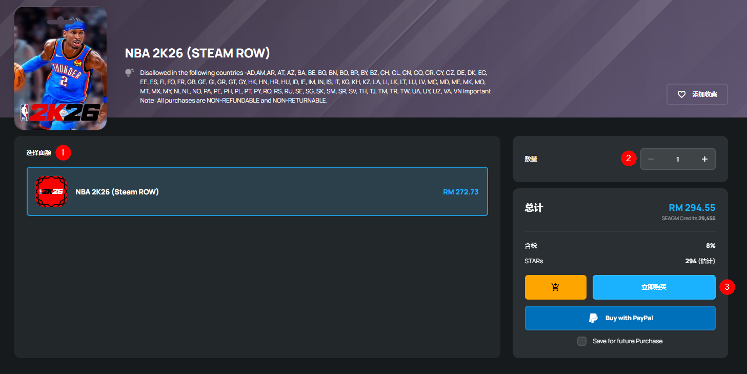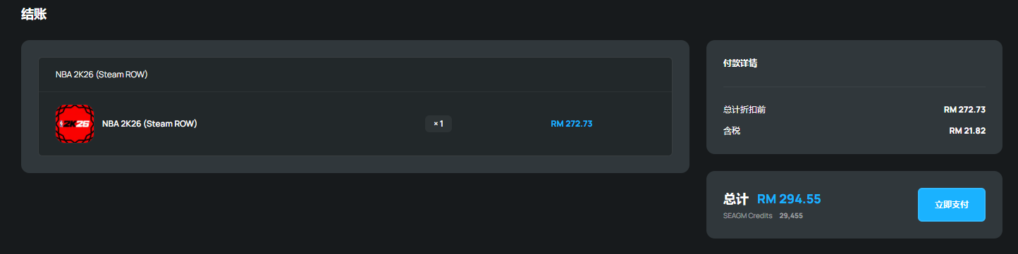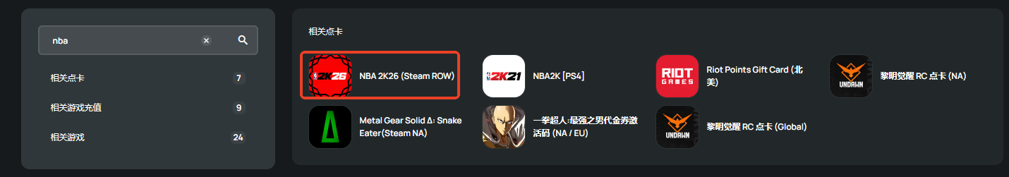 第 1 步:登录/注册 SEAGM 帐户。 在顶部菜单中,输入关键字“NBA”并进行搜索。 选择 "NBA 2K26 (Steam ROW)”。